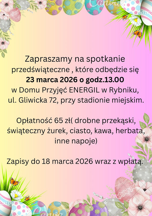 Szczegółowe informacje można znaleźć na stronie internetowej, tablicy ogłoszeń oraz dzwoniąc pod numer 32 – 7557990. |