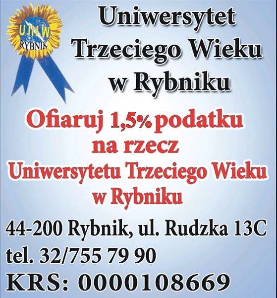 PODZIĘKOWANIE Zarząd UTW Rybnik składa serdeczne podziękowanie wszystkim osobom, które przekazały 1,5% podatku za rok 2024 na cele statutowe naszego stowarzyszenia. | |||||