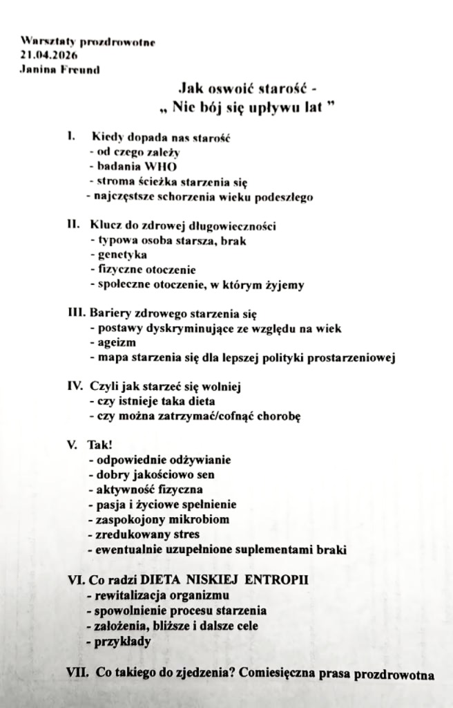 14.01.2025 Warsztaty prozdrowotne „Kto/co odpowiada za nasze nieracjonalne zachowania – nerw błędny?”– Janina Freund